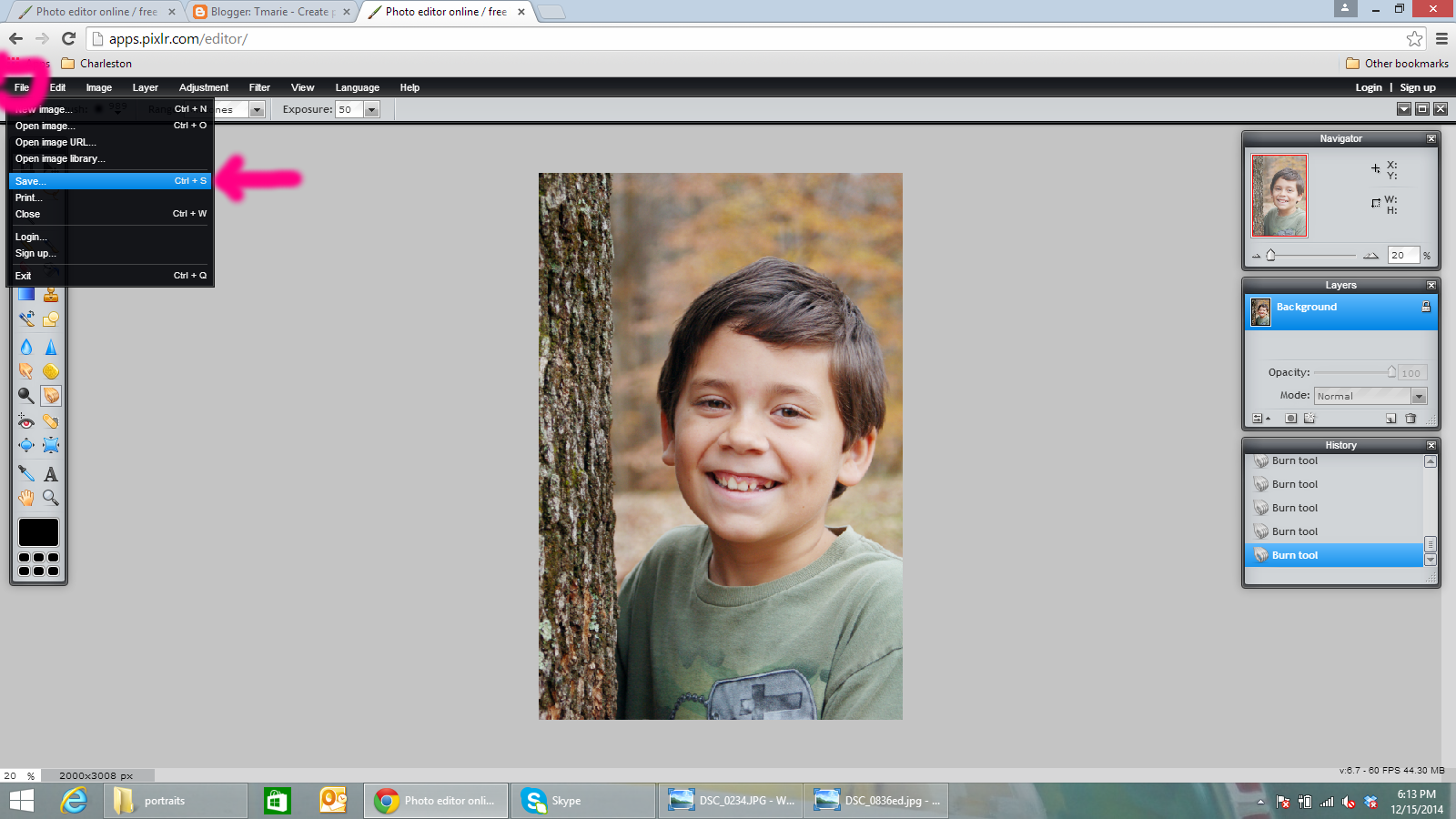 Now that you are done editing your image, and you are happy with it, you have to save it! Go to the toolbar, click the tab "File" then "Save".